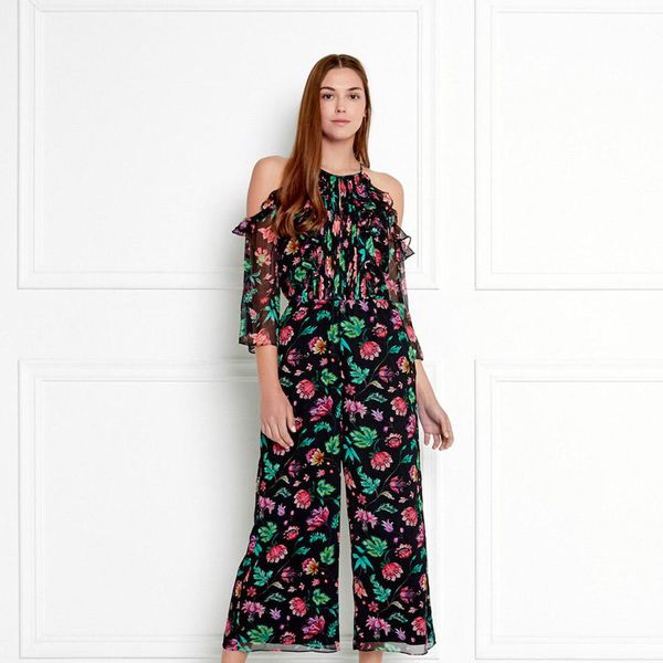 这款charmeuse连身衣裤感觉非常优雅,适合晚上的婚礼,有干净的线条和可调节的腰带来定义腰部。我们建议保持配件简单,所以圣人的颜色可以真正突出。