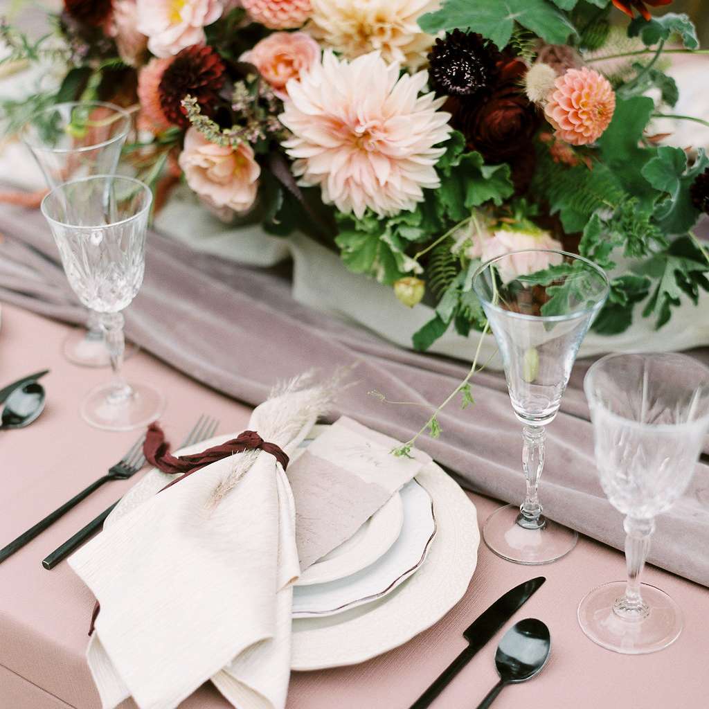 欲了解更多关于如何开始计划接待tablescape为你的婚礼2019,我们请婚礼策划到培养皿中,这将是热点,明年,从亚麻布和装饰华丽的调色板一个难忘的显示。