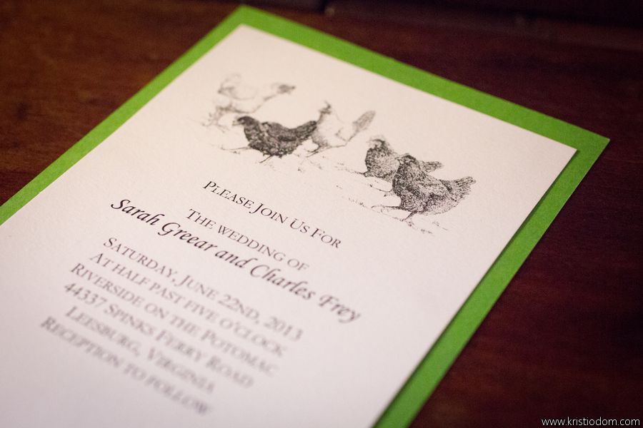 一对养鸡的夫妇在结婚请柬中向长着羽毛的朋友表示敬意。
