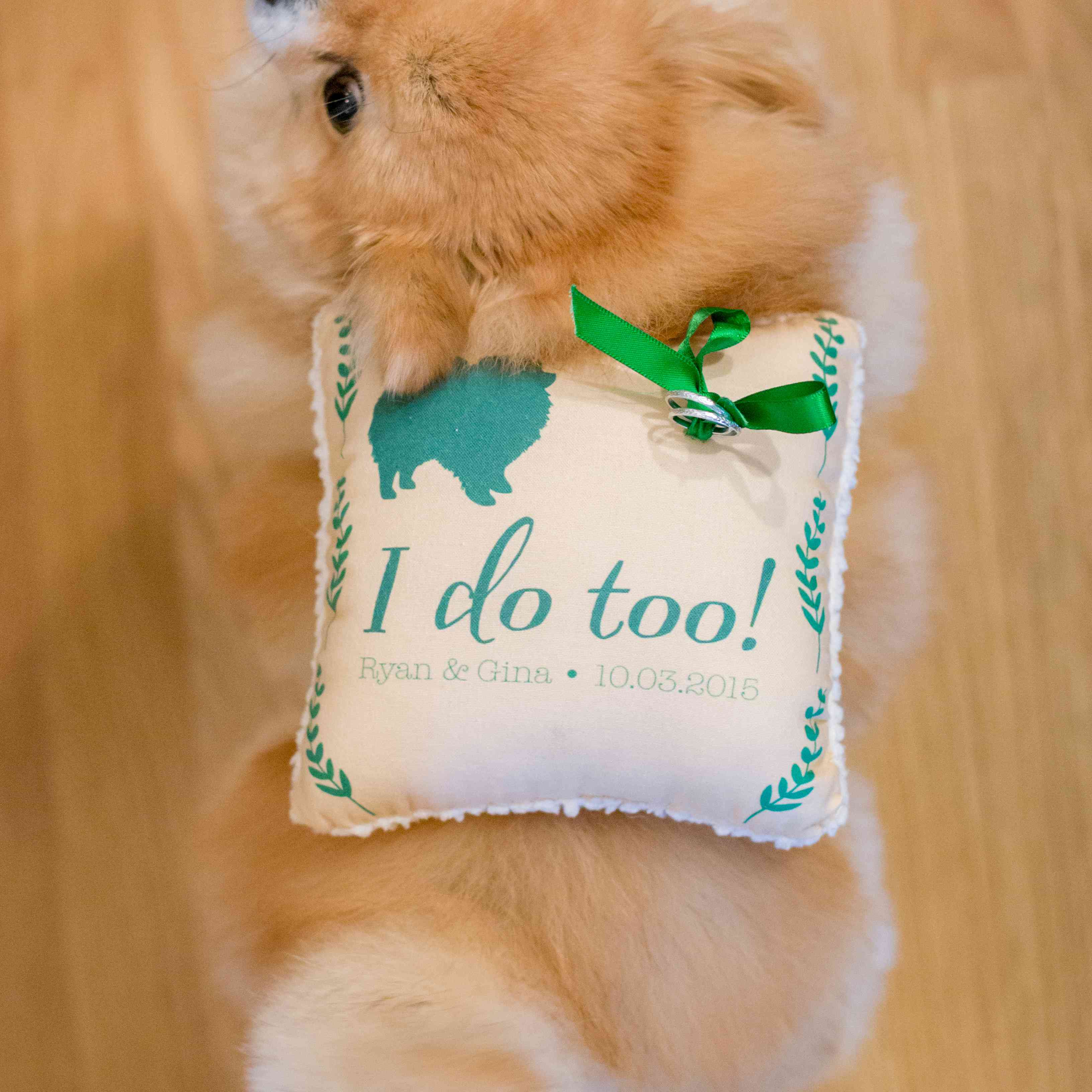 你的狗携带他或她的隆重登场专门设计的枕头(委托真正的戒指给伴郎)。