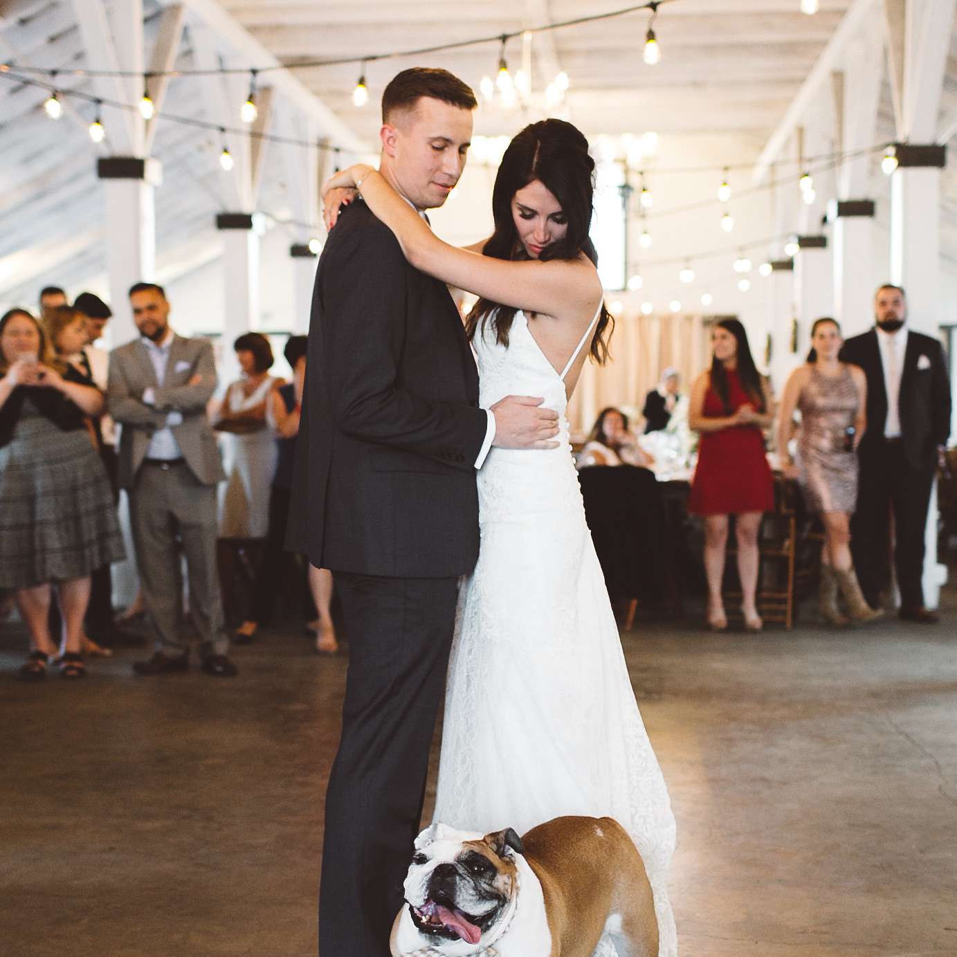 牛头犬加入了新先生和夫人为他们的第一支舞作为丈夫和妻子。