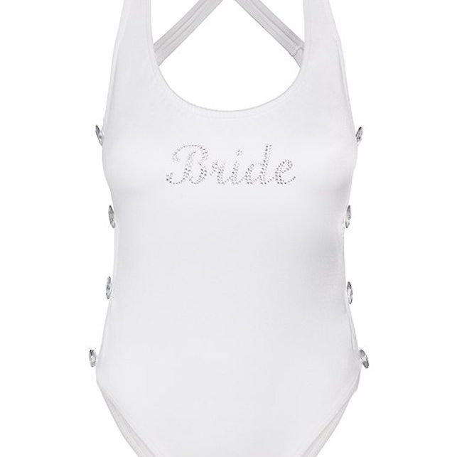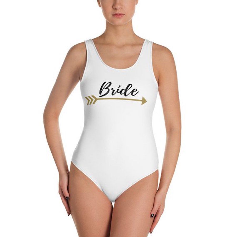 婚礼主题的泳衣也可以定制,无论你想要你的伴娘的名字是用手写体写的,还是你即将到来的姓氏是用印刷体写的,或者是用人造钻石和闪光装饰的。甚至还有准新娘和伴娘的搭配。选择是无止境的!