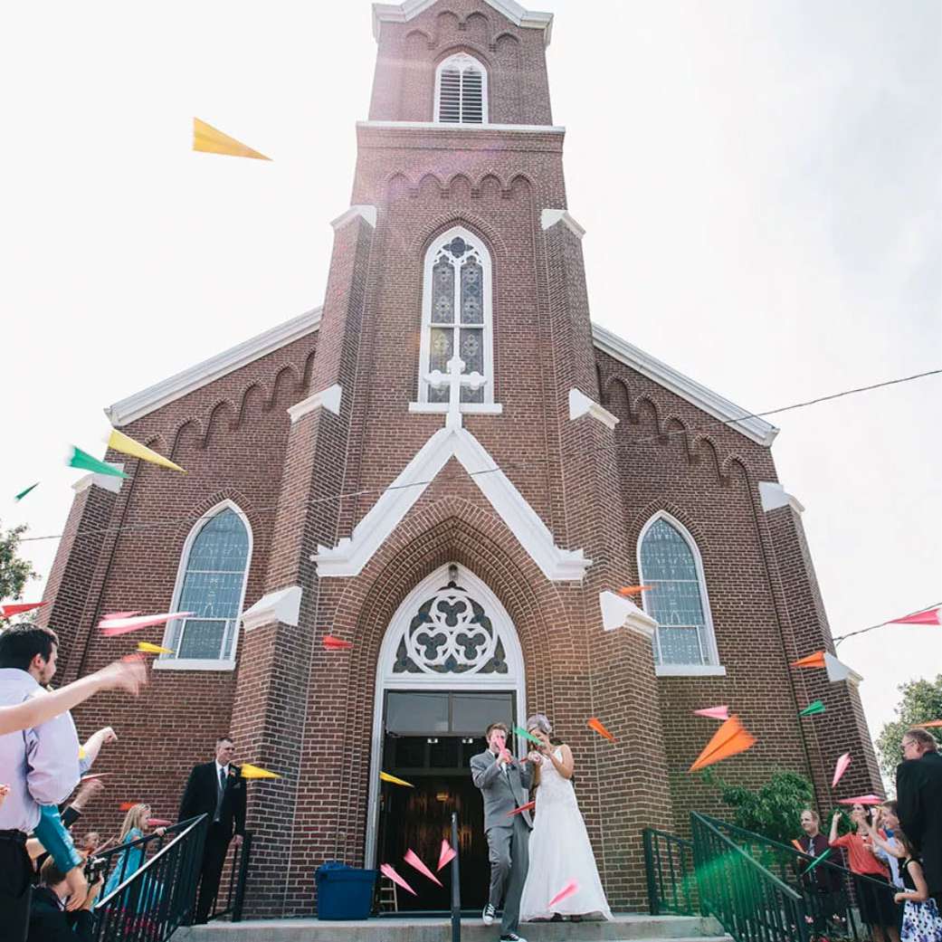 我们喜欢这个俏皮婚纱退出的想法!你的客人一定会得到一点点怀旧扔纸飞机,这是一个难以置信的方便和实惠的方式,使色彩教堂的台阶。