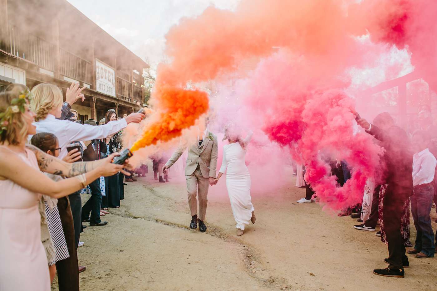 我们喜欢在这夕阳灵感的色彩梦幻般的爆炸沙漠婚礼。如果你想使用烟雾弹在你的婚礼,颜色是相当定制的,所以你可以混合和匹配,以适应你的主题。这些都是非常适合在户外举行婚礼(不掀起你的烟雾弹里面!),但由于它们可以染色,介意你的婚纱礼服。