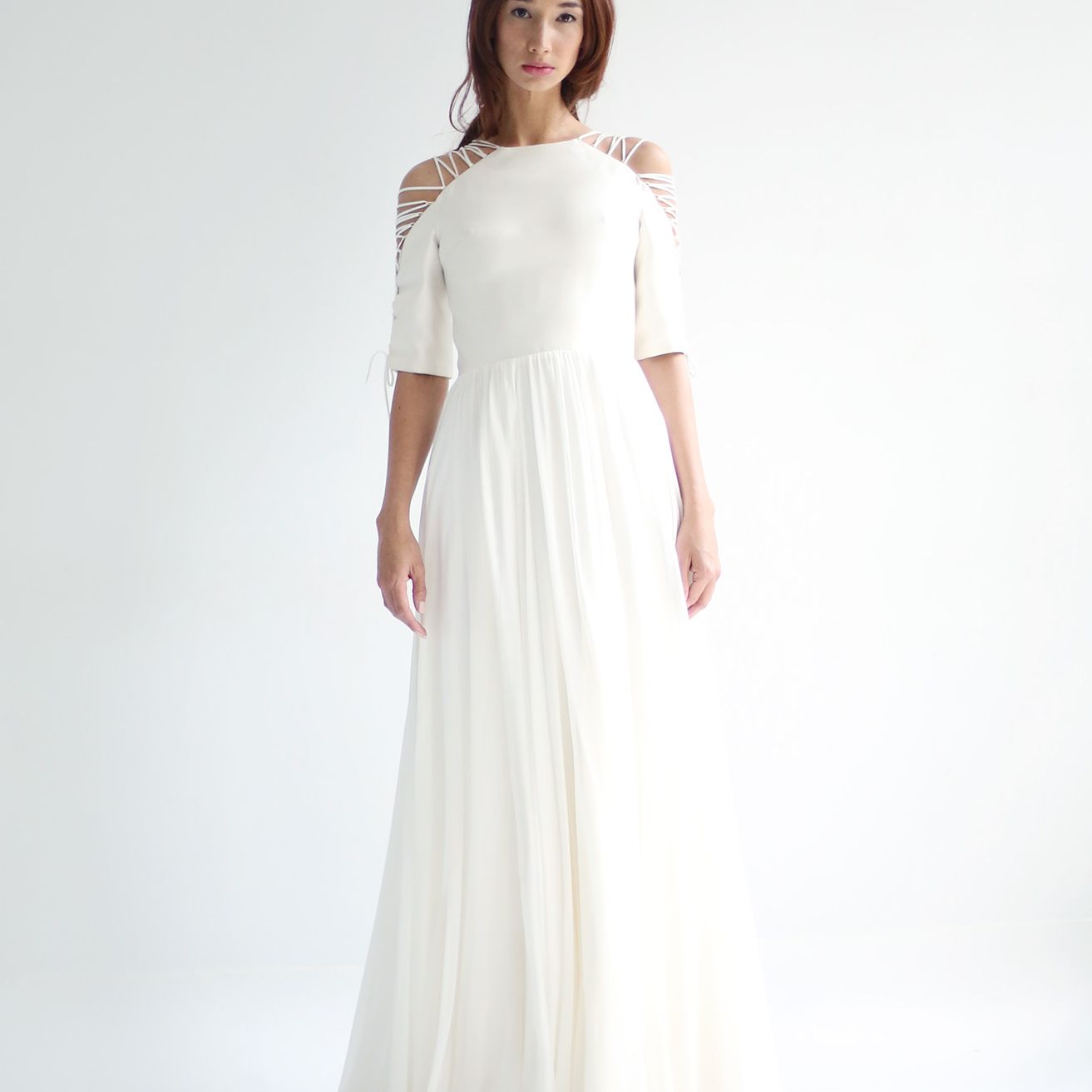 极简主义已经成为一种上升趋势婚礼时尚已经持续了几季,我们猜测简单的婚纱剪影将会再次流行起来,尤其是在梅根首次亮相之后。虽然你可能无法得到你的手确切的极简主义克莱尔·维特·凯勒设计纪梵希婚纱梅根·马克尔(Meghan Markle)穿的那件,我们有第二件最好的。