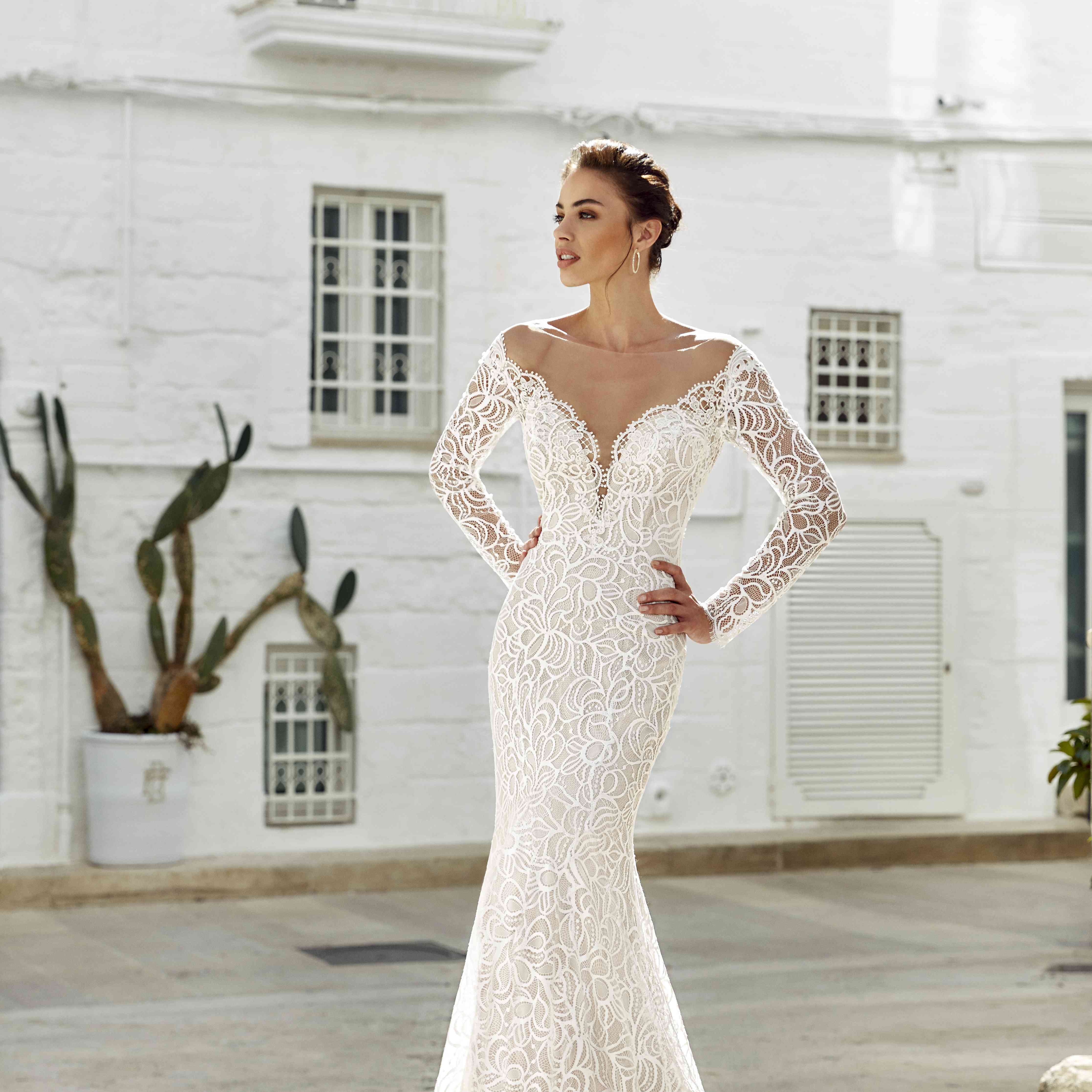 长袖露肩婚纱,byPronovias