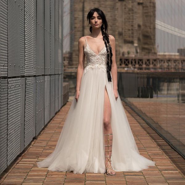 最好的是,露肩领口可以适应各种不同的场合婚礼的风格。如果你想要一个古典优雅的外观,那么就去买一件有更宽的肩带和有结构的布料的连衣裙吧。立体的花卉细节和扇形的效果增加了女性的华丽,而深v的领口加强了曲线。放荡不羁的新娘,飘逸的面料和礼服焦急不安的露肩的袖子在呼唤你的名字。