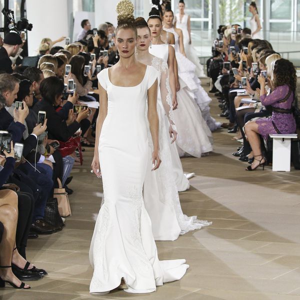露肩婚纱是毫不费力的浪漫,使它成为新娘永恒的最爱。本赛季在美国,设计师们用薄纱(Sabrina Dahan)、从背后连在一起的细丝袖(THEIA),甚至是用珍珠完全覆盖的领口(Lela Rose),为这种经典款连衣裙注入了新的元素。我们还发现了结合裸肩和长袖,为原本带有全银花边的传统礼服增添了撩人的吸引力。