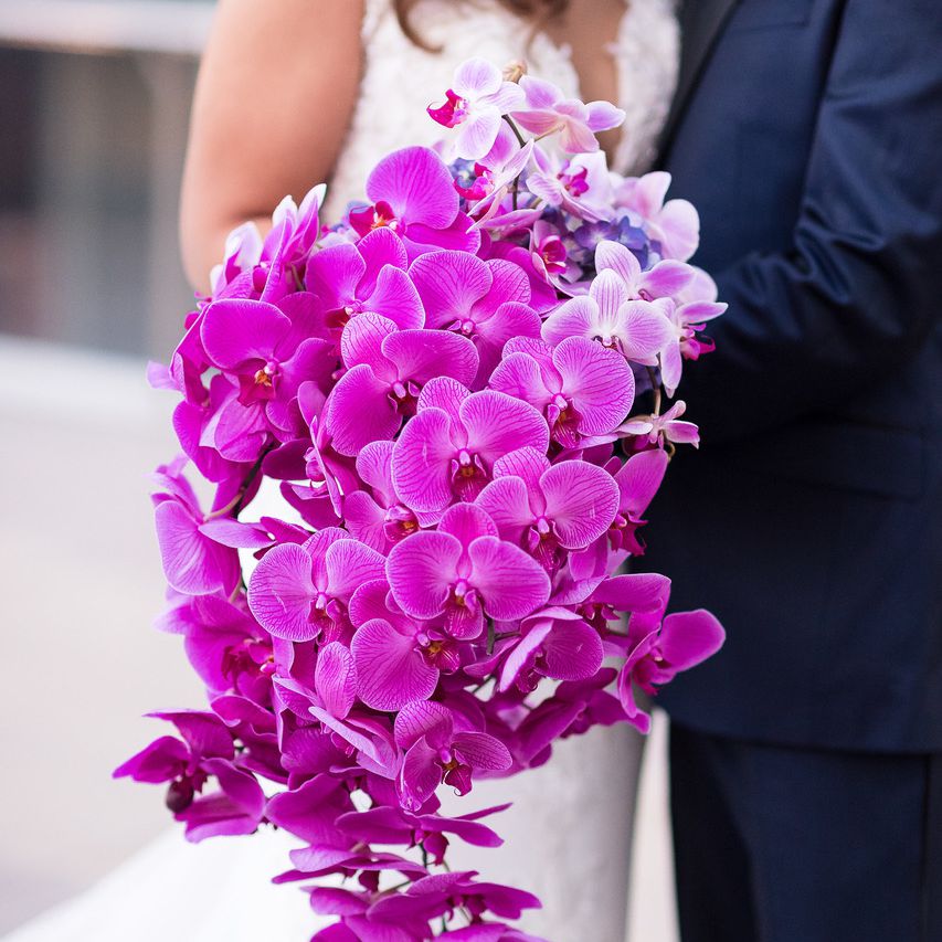 新娘比以往任何时候都更喜欢在花束中选择大胆的颜色和意想不到的形状。“我们看到了很多不对称的风格和结构,”安德里亚•埃波利托(Andrea Eppolito)表示安德里亚Eppolito事件。她补充道:“想象一下层层叠叠的花朵,丰富的纹理,兰花在长长的花束中,花束的色调是丰富的单色的。”