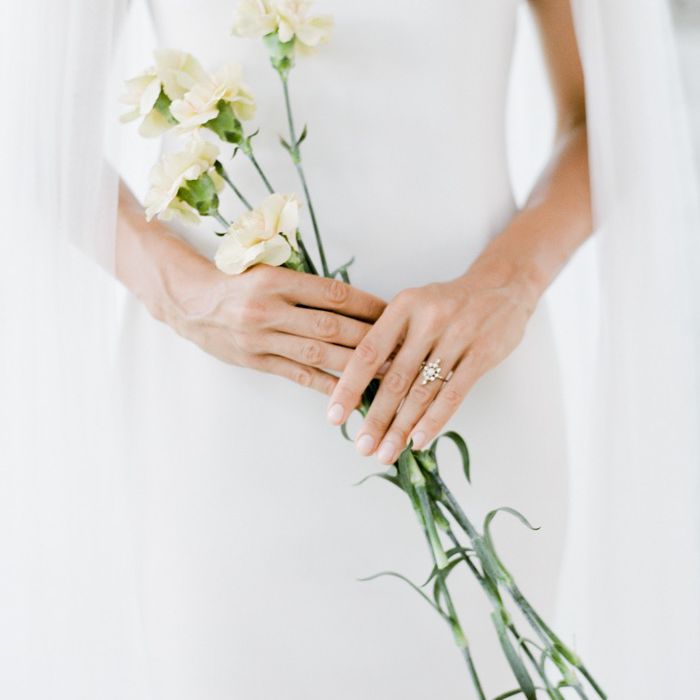 2019年的一大趋势是极简主义——“细节独立存在,劳拉Remmert事件。这束花是丽莎·卢贝尔送的Peartree花是由一些美丽的康乃馨茎组成的,”Remmert说。曾经被认为是“填充花”的康乃馨,现在以独特的颜色和色调出现在婚礼上,比如这种古老的黄色品种,在极简主义的安排中独树一帜。
