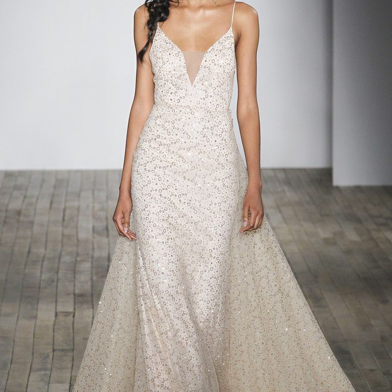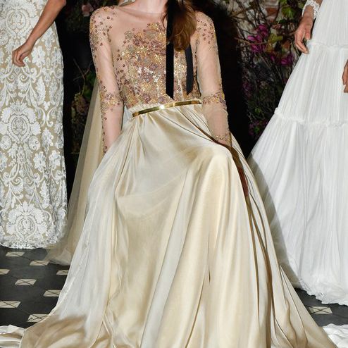 是否以形式出现闪亮的金属色在2018年的春季时装系列中,无论是亮晶晶的珠饰还是闪闪发光的饰品,可供选择的款式都不少。Lozano和YolanCris的高级定制礼服闪耀着迷人的光芒,其金色光芒足以与任何帝王般的女王相媲美,礼服的轮廓也是如此。如果你是一个喜欢银的冰冷色调而不是金的温暖和火焰的新娘,波塔和纳伊姆汗拥有你想要的一切,甚至更多。两者都采取了一种迷人的、非传统的方式,尽管在不同的方式上,前者强调它的商标复杂的满足性感的外观与幻觉的裙子,剪纸,斗篷,和后者提出了一个现代旋复古的影响,无论是20世纪20年代的飘逸裙装还是70年代的时髦连身衣。如果你不能决定你更喜欢哪种金属,梅森·霍斯克(Mason Hosker)提供了一个完美的折衷方案,将银色和金色混合在一起,与经典的轮廓并置,营造出一种闪烁的现代感。