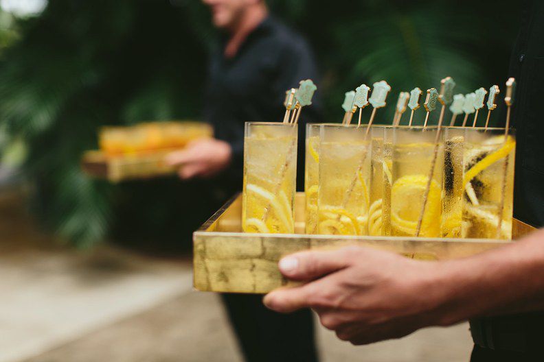 当涉及到规划首要的事情夏日婚礼记住你的客人,记住你要应付的是超高的温度紫外线。创意鸡尾酒般的普罗赛克冰棍,桑格利亚站和乐动体育app下载LDsport -garnished宇宙可以帮助客人激战中,将解渴。你也可以更换传统的多层婚礼蛋糕冰淇淋给客人在前台甜点。(你甚至可以聘请一个实际的冰淇淋车来参加你的婚礼作为一个特别的惊喜!)至于那些太阳光:考虑给与会者别致的草帽作为支持(!或将其用作护送卡),并为大家提供了遮阳伞或在酒会和晚宴,尤其是如果这是在下午的球迷。