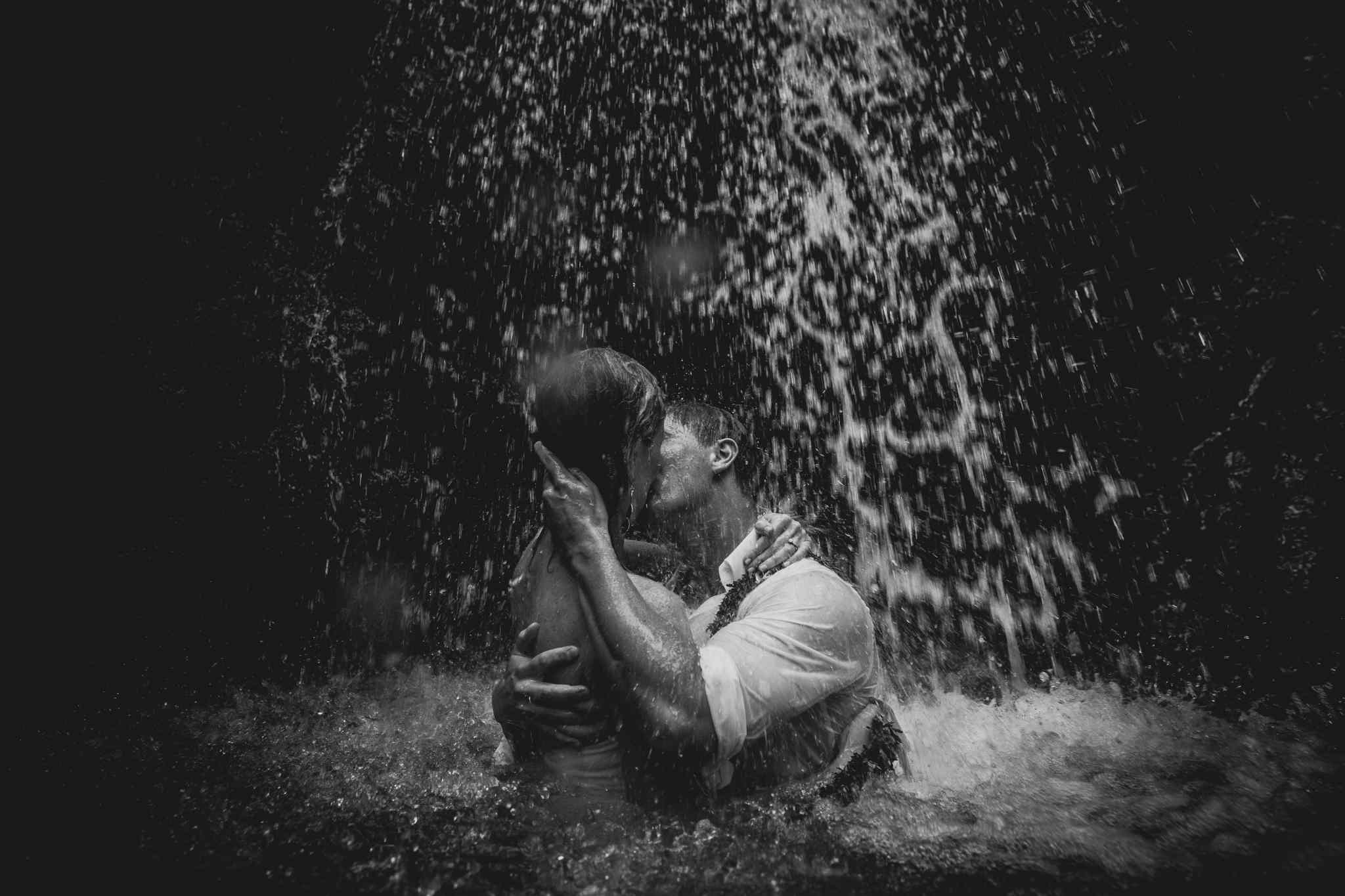 这种黑白的感觉就像好莱坞老电影里的一样。在隐藏的瀑布下接吻——还有什么比这更有激情的呢?