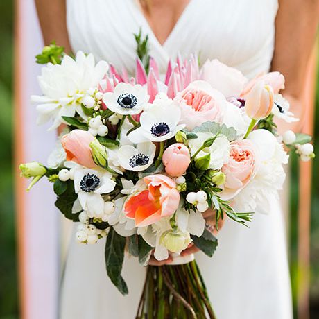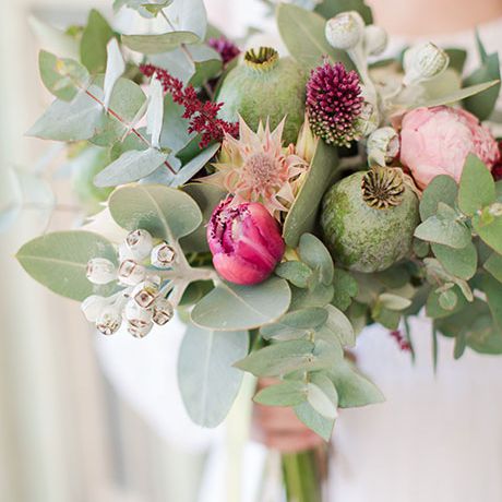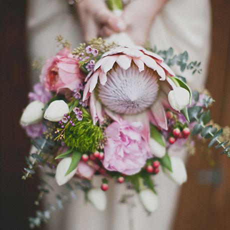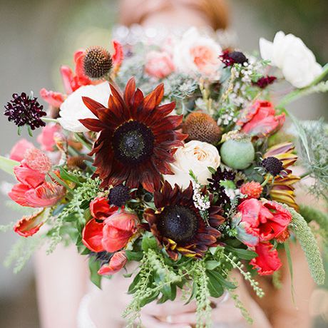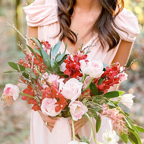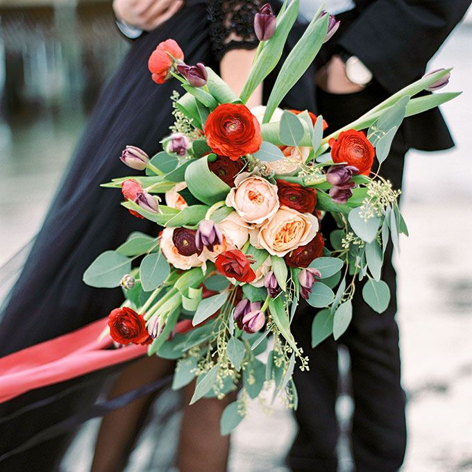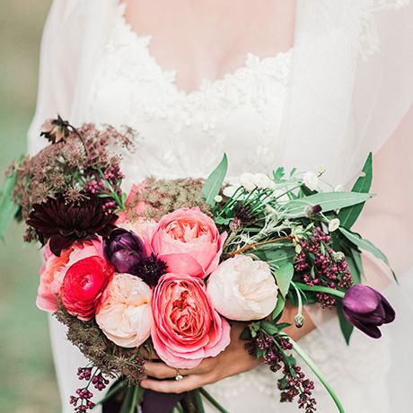 经典的新娘一定会喜欢全白色的花束与牡丹,铁线莲,郁金香,而一个更波西米亚的新娘会倾向于安排这些紫色和红色色调的季节性花朵,与其他花卉搭配。