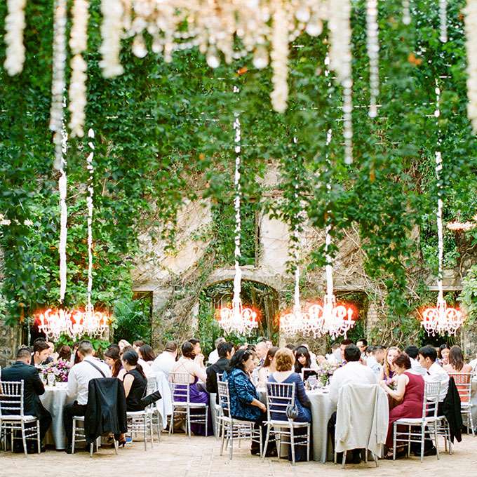 Jana Morgan" data-caption="It should come as no surprise that there are countless ways you can decorate your reception venue, but going with the less-than-expected picks (read: those hidden gems buried deep on your Pinterest board) will make your event truly shine. Sure, twinkle lights and lanterns are beautiful, but how often have you seen ivy chandeliers and dangling crystal-inspired lights?" data-expand="300" id="mntl-sc-block-image_2-0-23" data-tracking-container="true">