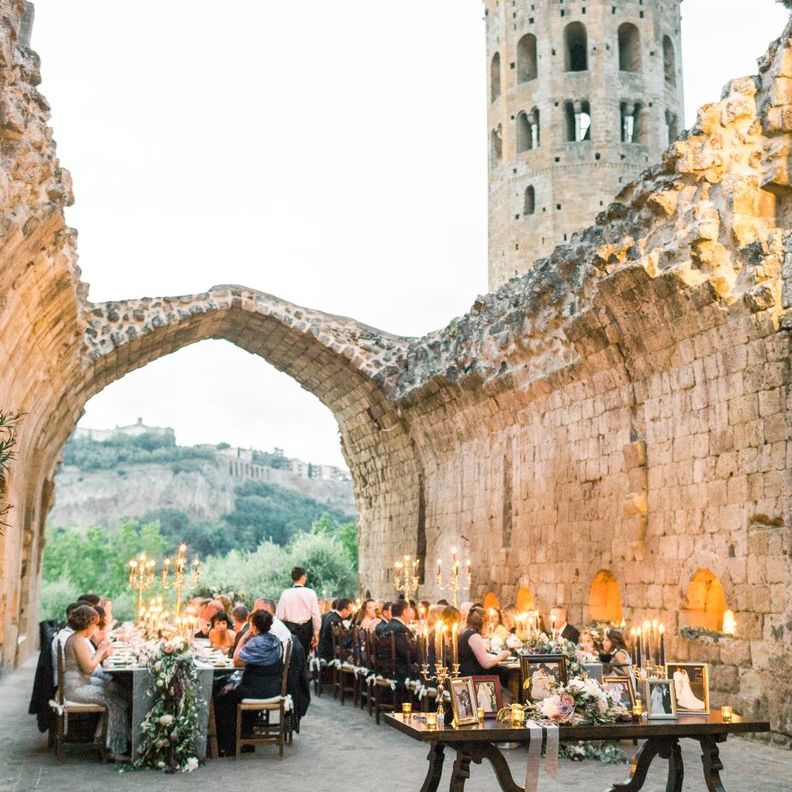 在意大利的这场婚礼上,新娘没有使用任何鲜花,也没有必要用这样的蜡烛。