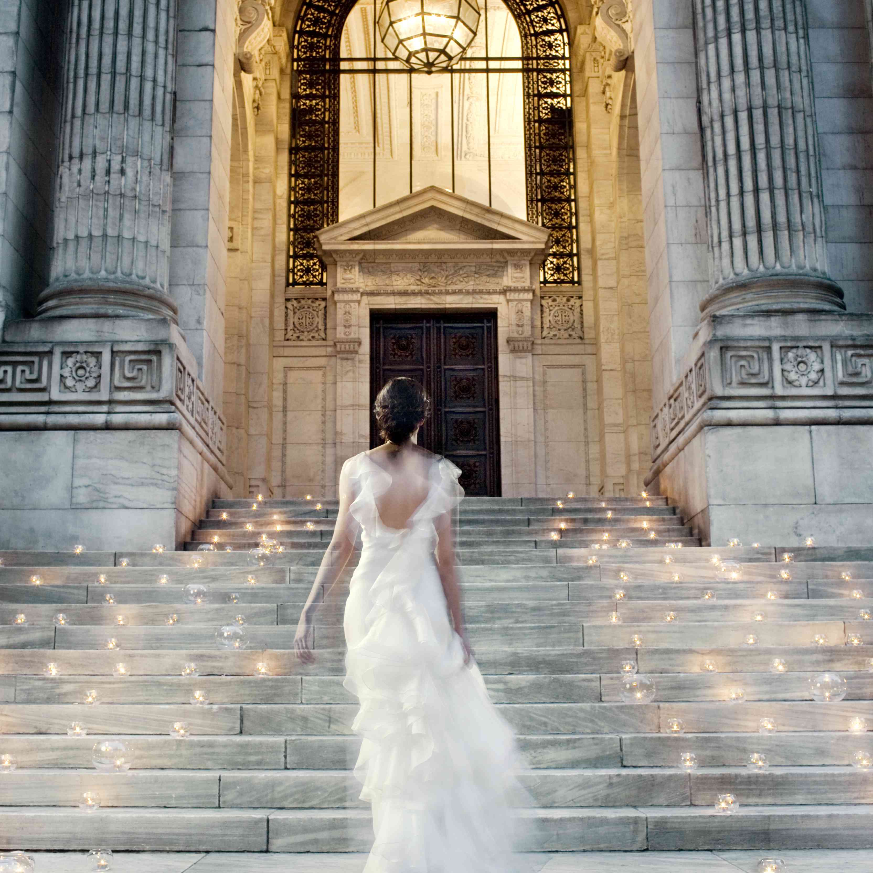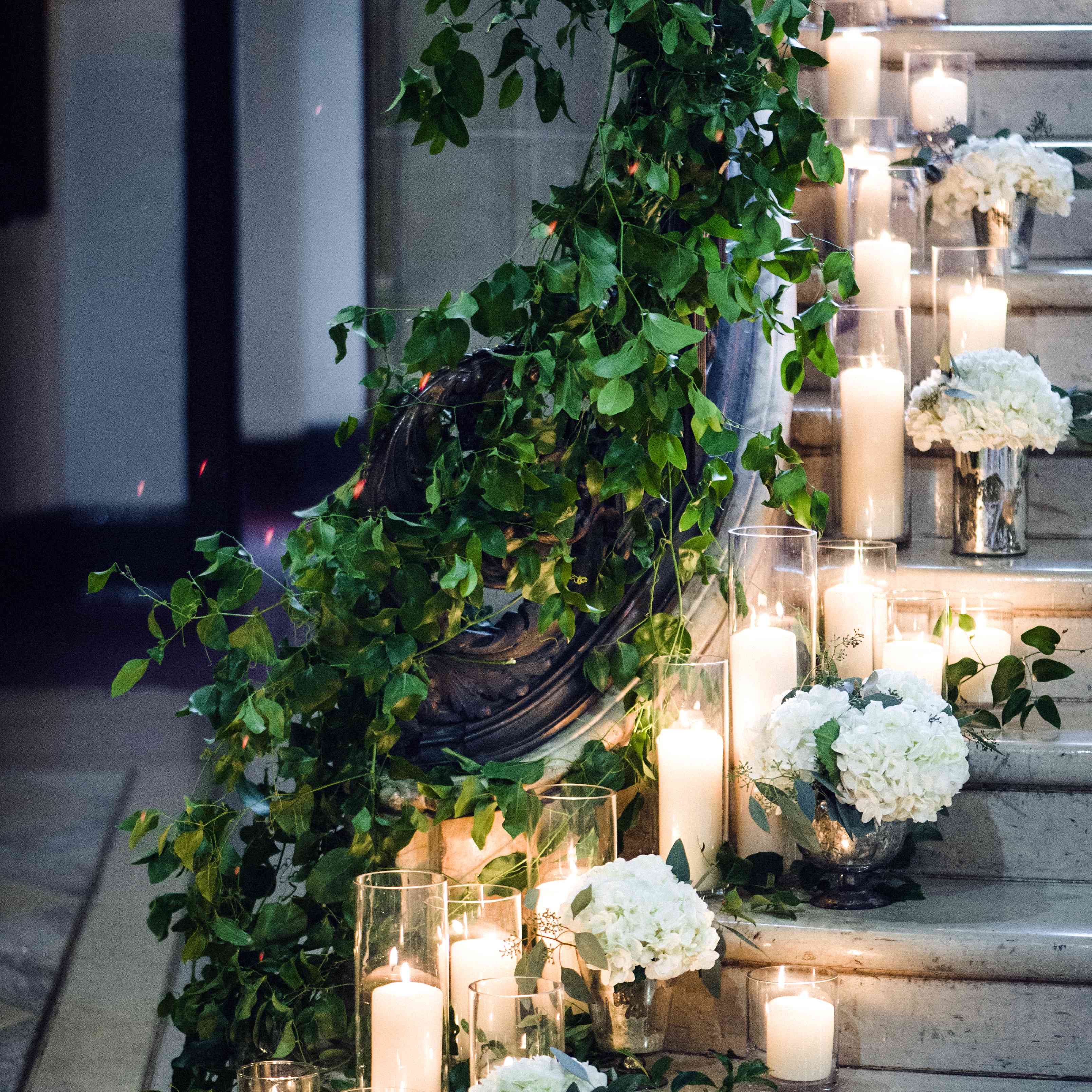 让您的隆重入场更加盛大楼梯上的茶灯闪闪发光。