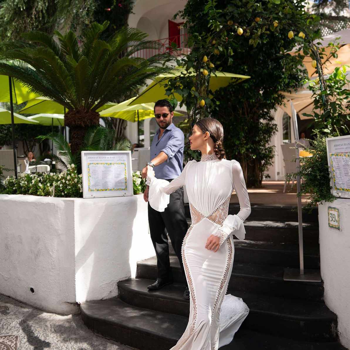 如果你是一个干净的和经典的外观像萨塞克斯定制的公爵夫人纪梵希礼服designed by Clare Waight Keller, a minimalist design is right for you whether you’re hoping for a replica of the famous boat-design, desire an impeccable high-neck silhouette, or want a modern version with a touch of lace or cut-out design. A minimal wrap-style silhouette or off-the-shoulder design is gorgeous, too, especially a fashion-forward version with tuxedo-inspired details or voluminous sleeves.