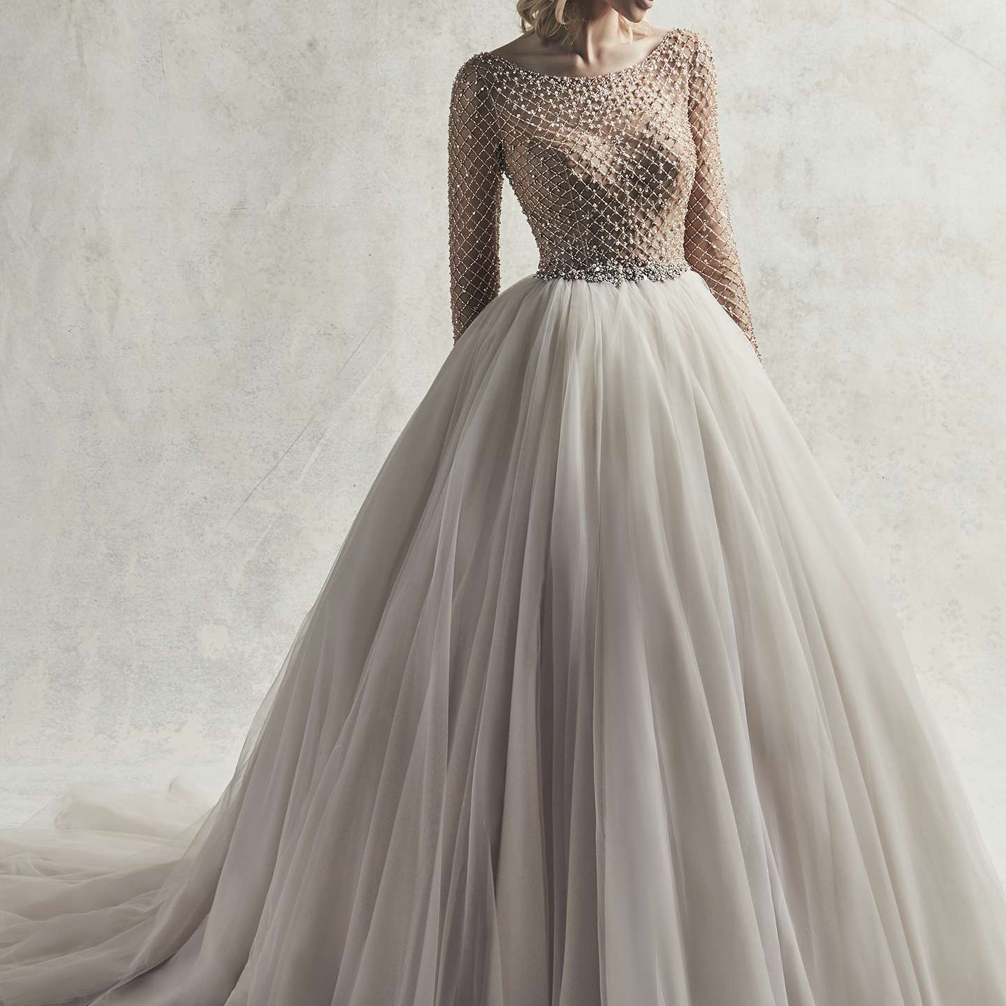 薄纱婚纱和钟袖婚纱由Sottero&米奇利