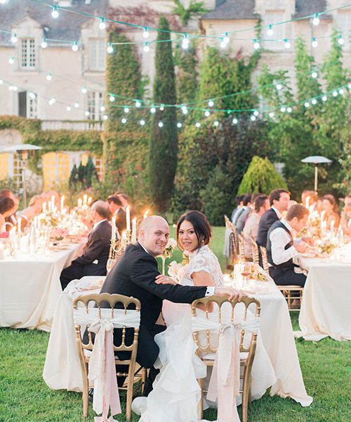 婚礼在图书馆高耸的中庭举行,在那里,詹姆斯和诺拉在走廊尽头增加了一个金色的六角形祭坛。几何金色的椅子也增加了一种艺术装饰风格的空间。