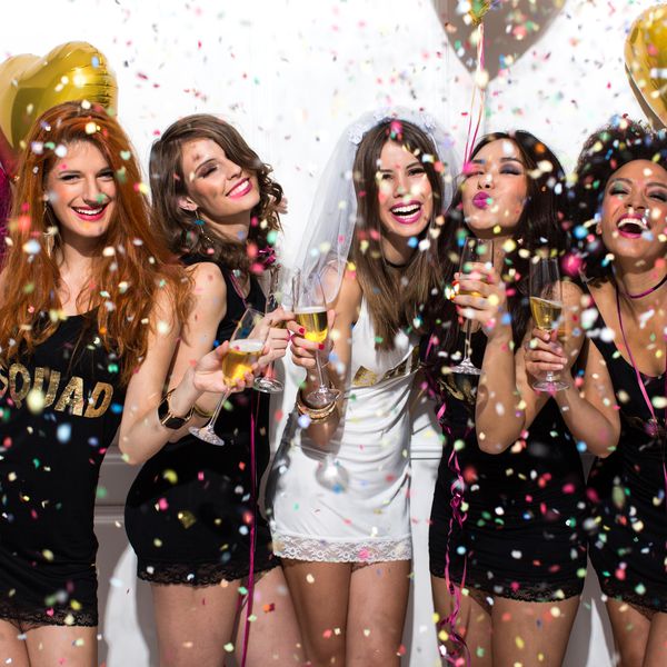 例如,Snapchat可能是一个棘手的应用,因为照片/视频证据在技术上消失了,这意味着如果你不直接发给新娘,她可能永远不会看到你发布的内容礼仪世界莎朗·施韦策。“Snapchat的视频还可能实时捕捉到单身女郎派对参与者希望私密的许多时刻。”If the bride (and everyone else there) isn't worried about it, though, Schweitzer suggests making a Snapchat Geotag for the occasion to celebrate and preserve memories throughout.