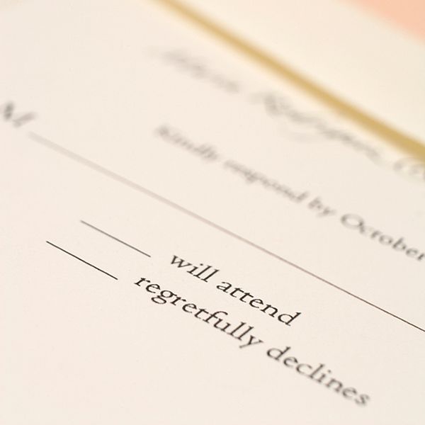 当你用这个借口时,没人会问你问题!我当时感觉很糟糕(哈!)而且离新娘也不是很近。她也有一个巨大的婚礼我知道我不会被错过。在婚礼上,我主动提出为自己的餐盘买单,她拒绝了。她非常同情我,结果我得了严重的胃病。现在回想起来,我撒谎了,感觉很不好,但现在你能做什么呢?”*— Meg *
