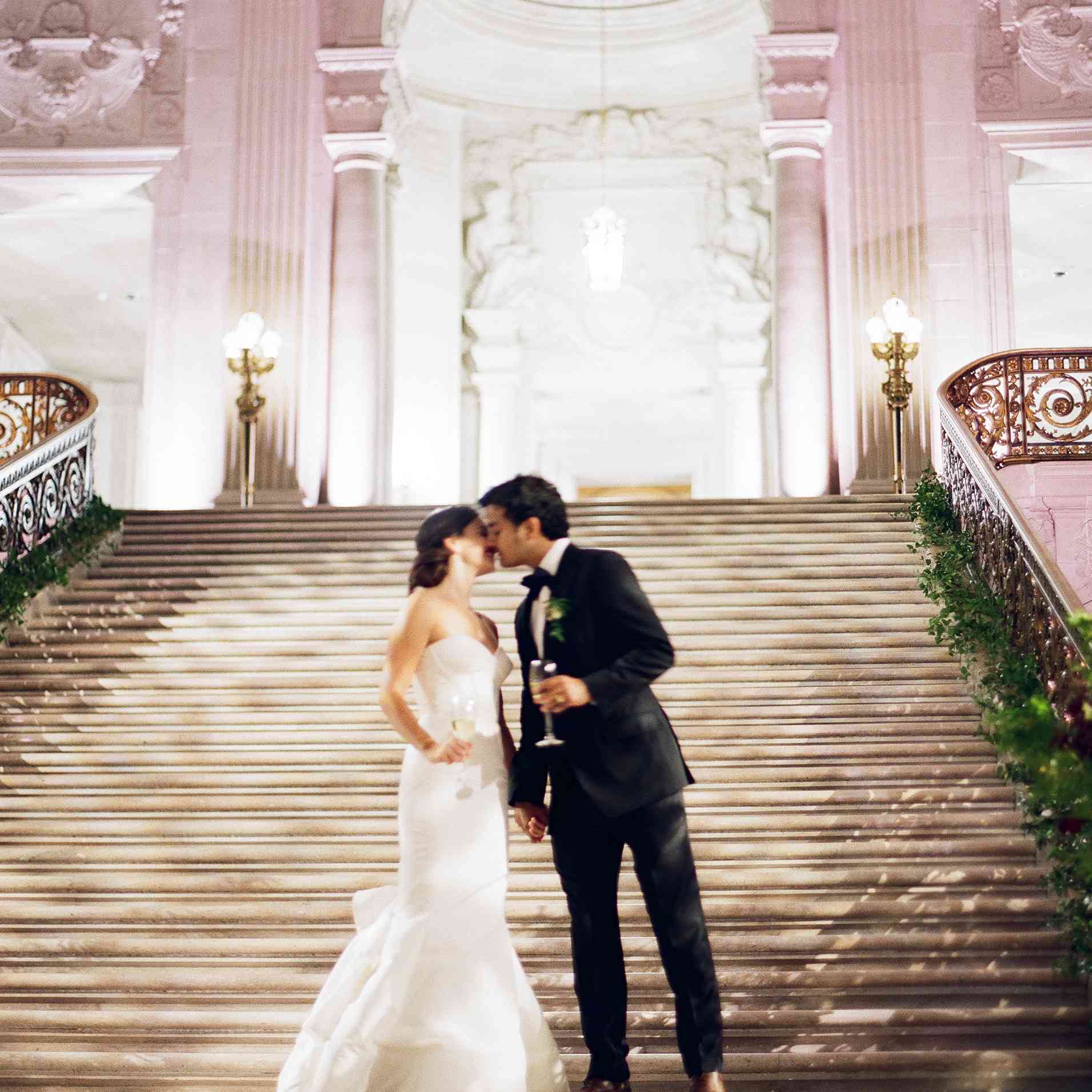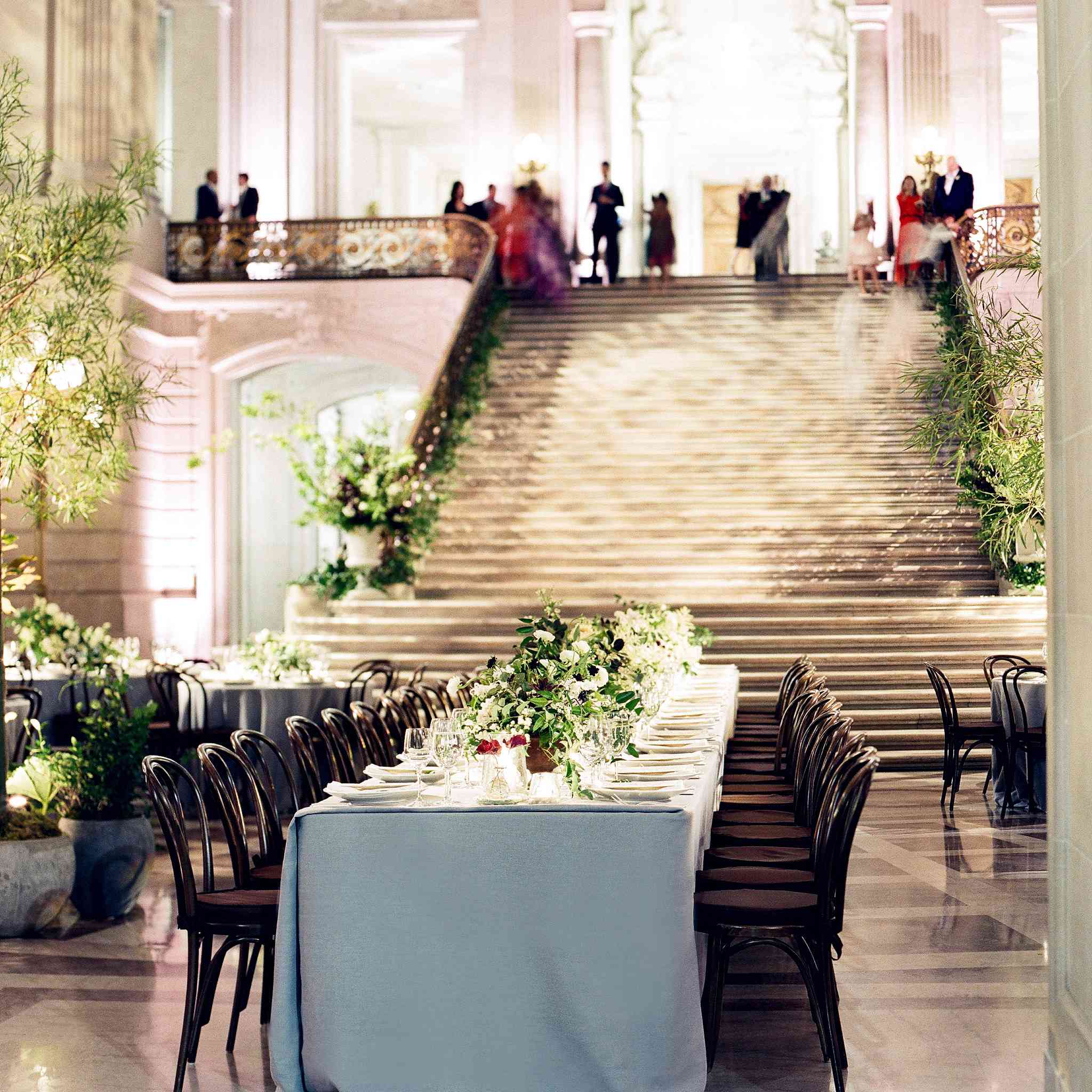 在16年后,米歇尔·拉巴金和保罗·皮托想象他们在一个小小的里结婚市政厅仪式然后在家里举行一个大型派对。相反,他们做了相反的事,在新娘位于皮埃蒙特的家中喜结连理,加利福尼亚州,然后进入乐动官网网址 在历史悠久的市政厅的圆形大厅举行正式的招待会。“这是反向逻辑,”米歇尔说。“我们喜欢这座建筑所代表的意义,以及它本身的美丽,但我们不可能在仪式和接待之间迅速扭转空间。”