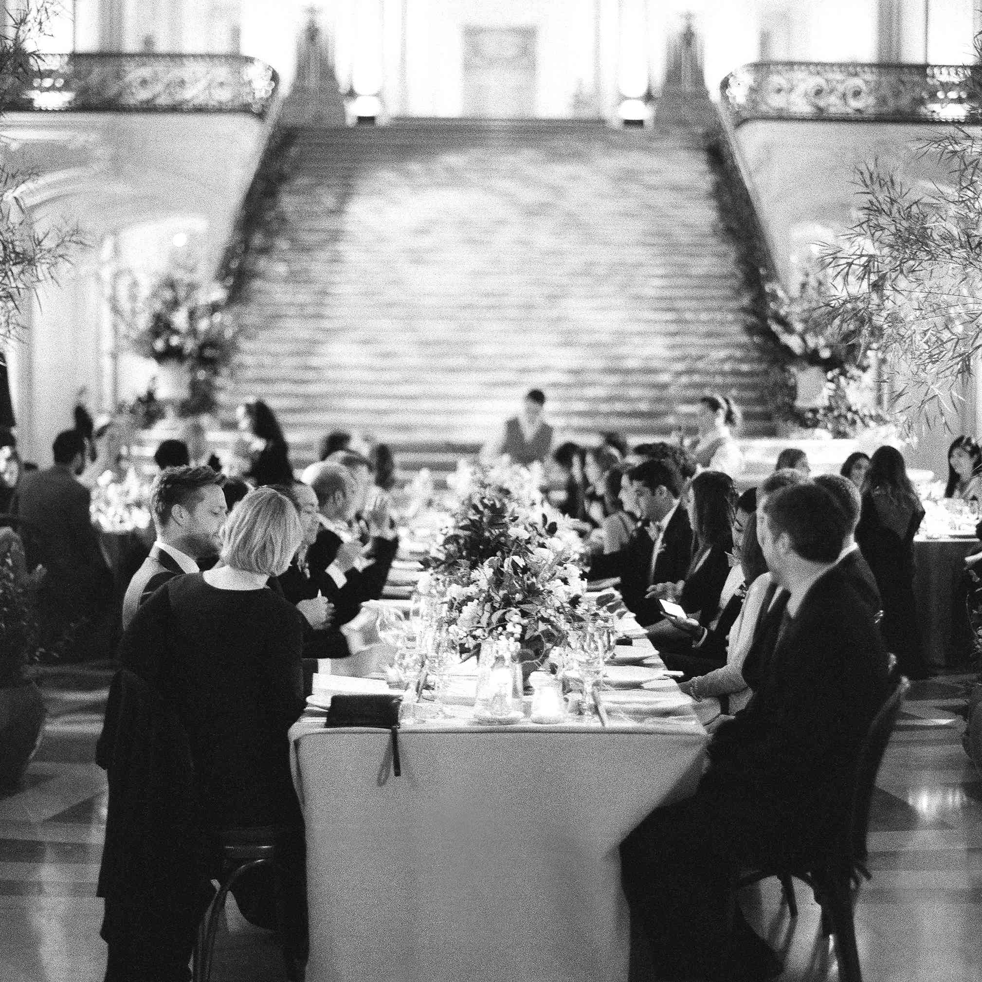 仪式结束后,客人被关闭进入旧金山市中心,在那里他们在市长的阳台上对待着香槟酒料市政府。在那里,每个人都发现了一个护送卡片显示,他们不会很快忘记:莎拉中世界创造了被压制的植物,这些植物已经完成了客人的名字和桌子作业,所有这些夫妇的书法家手写。“我们正试图思考正确的方式来培养植物,”新娘说。“我喜欢植物和纹理,但压制的植物对我们邀请开始整个谈话的邀请是一种很好的暗示。它没有过于主题 - y,但我认为他们是我们婚礼灵感的更具文字代表性。“