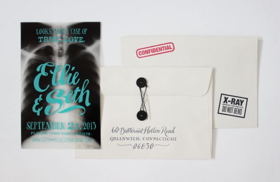现在这个是一个意外的保存最约会!新娘和新郎(包括医生,当然!)想要的东西,非传统的,所以松脆饼凸版印刷丝网印刷在明亮绿松石一个手写的设计上的X射线。