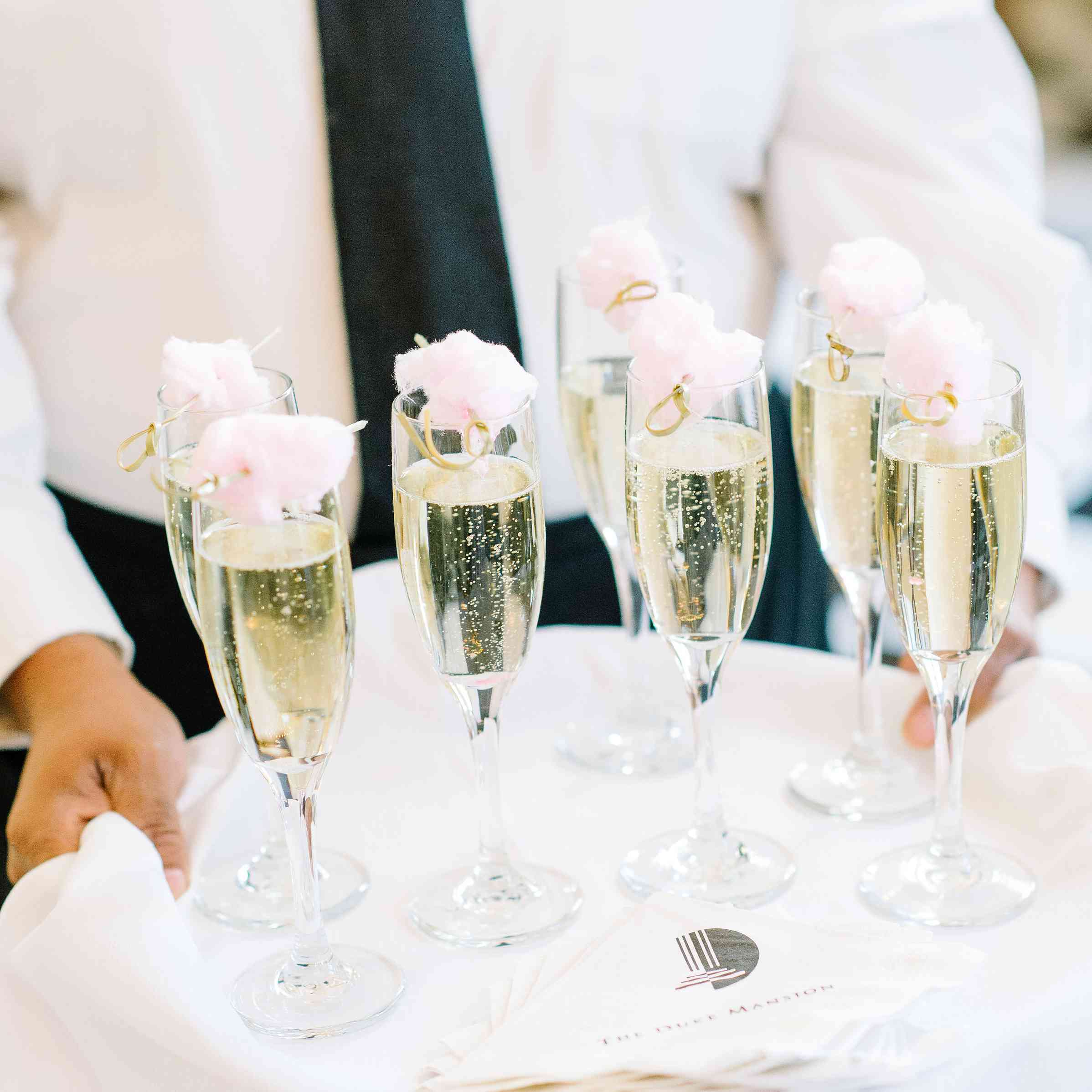 没有什么能比得上甜的和起泡的组合,特别是在完美的小杯的比例。在鸡尾酒时间,客人们可以举杯向这对幸福的夫妇祝酒,但前提是要享受一小杯糖。干杯,小棉花糖和所有的。