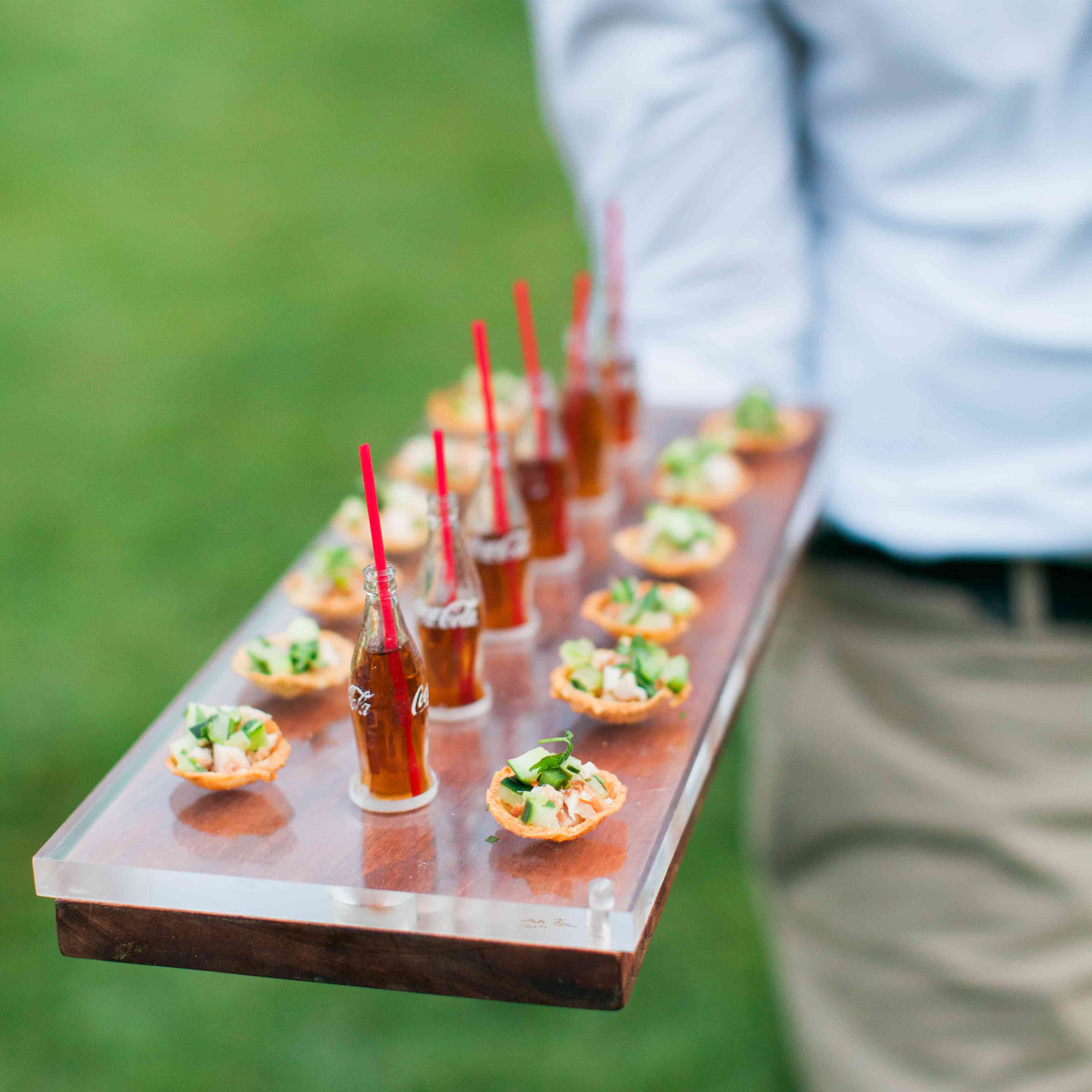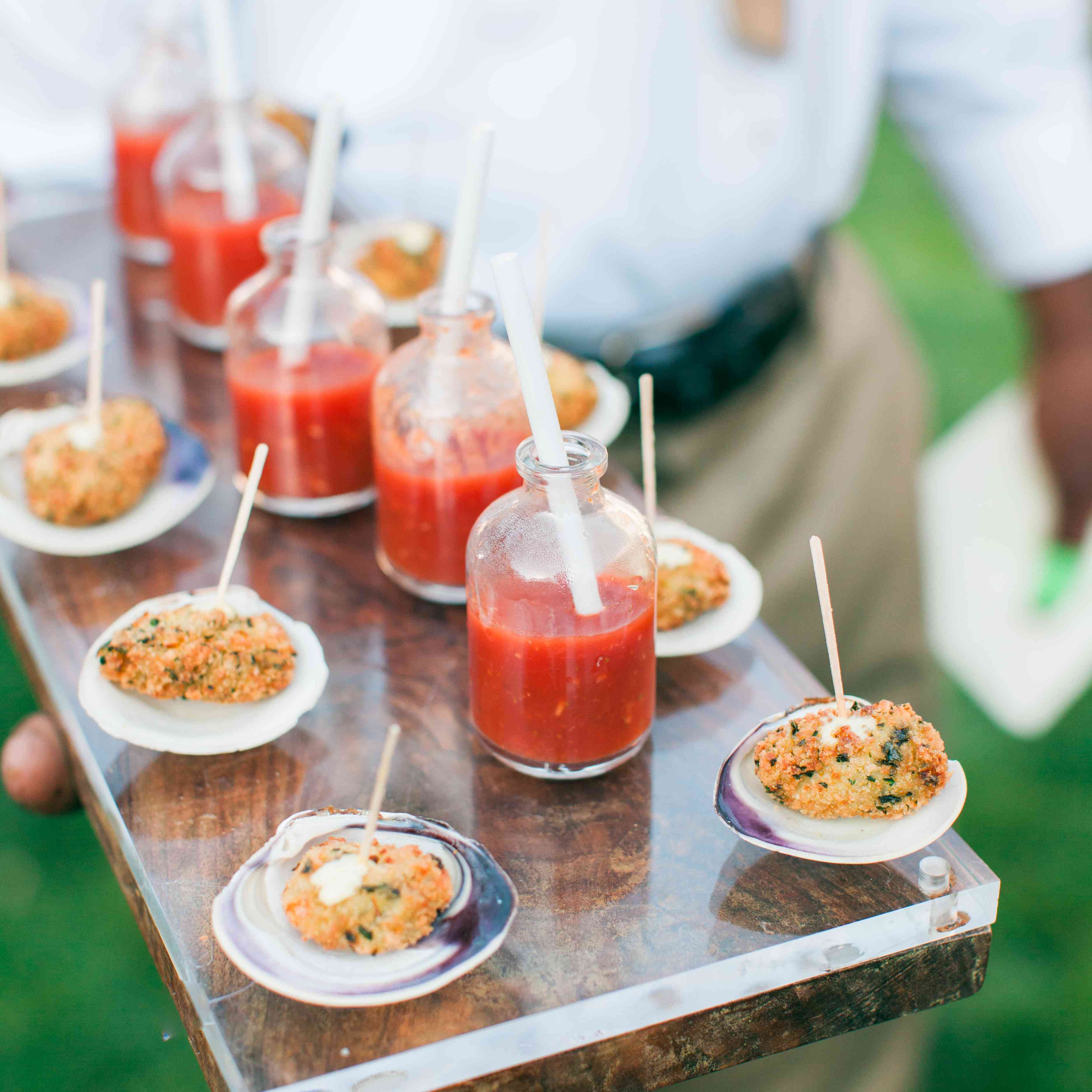 来吧,一起玩您weddin克食物!的万无一失的方法你的客人在你的接待留下深刻的印象是服务小型鸡尾酒会食品配对 - 是的,你正确读取。信不信由你,您cocktail小时是一个真正享受菜单选项的机会,所以通过提供你最喜欢的食物和饮料组合的一口大小的版本,让它更上一层楼。迷你炸玉米饼吗?我们将有三个。一杯小小的血腥玛丽?不介意我们这么做。在婚礼后很长一段时间里,你可以用手拿食物咀嚼,用小杯饮料狂饮,你的开胃小菜选择将会成为你最亲近的人谈论的话题。另外,如果你要举办这个节日婚礼前、迷你鸡尾酒和浅色紧身裤确保没有人会在婚礼上跌跌撞撞。这里有一些美味的(和意想不到的)搭配,一定会让你在喝鸡尾酒的时候肚子咕咕叫,口水直流。