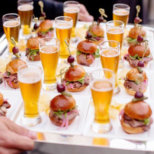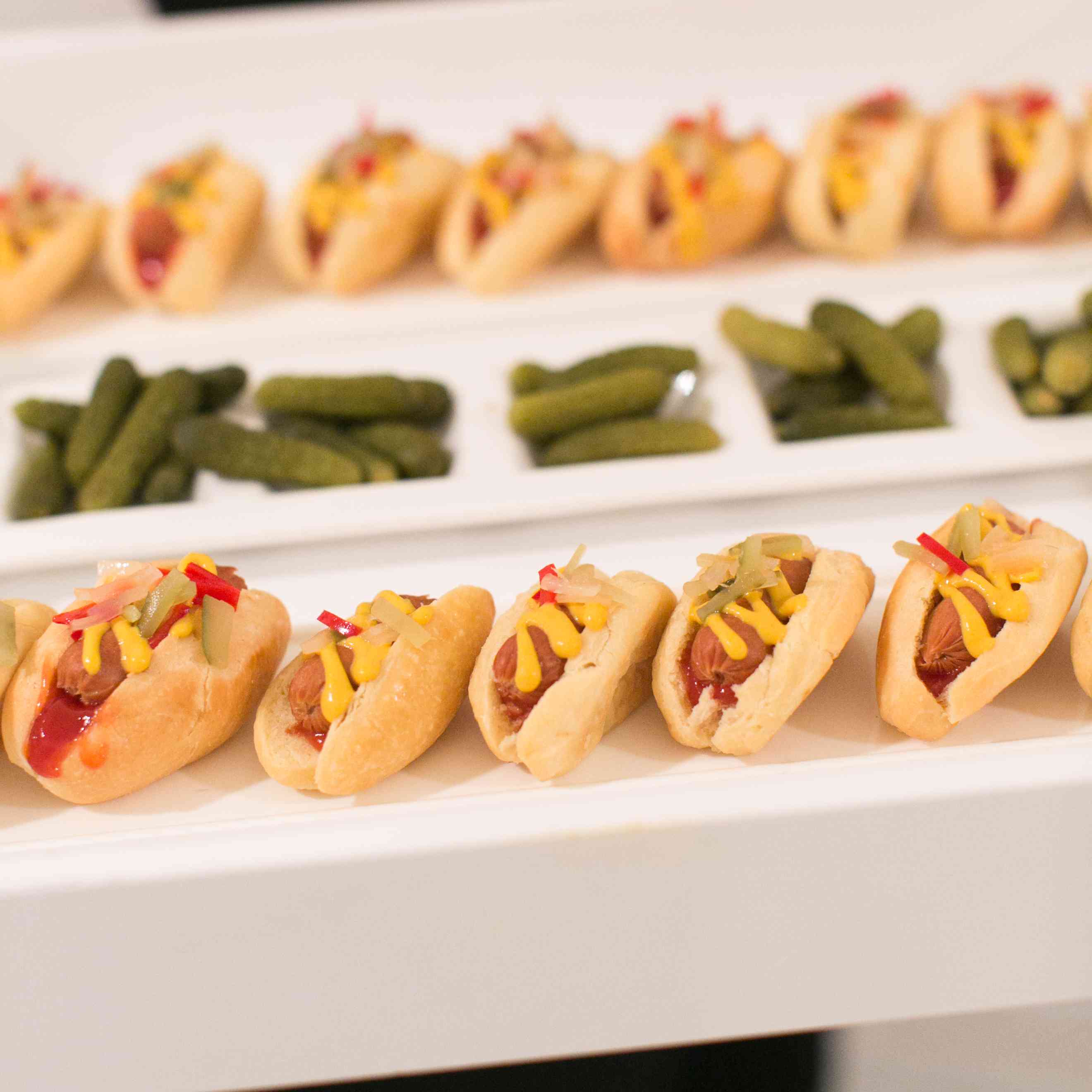 像热狗食品小版本感到复杂和个性化。“我们会根据夫妇最喜爱的食物菜单”旧金山餐饮服务贝蒂Zlatchin餐饮的大卫Zlatchin说。对于饮料,去与一个典型的美国IPA或其他淡,脆啤酒。