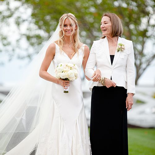 仪式在农场马球场上的一个帐篷里举行。这对夫妇结合了天主教和犹太教的传统,包括打破玻璃的传统。