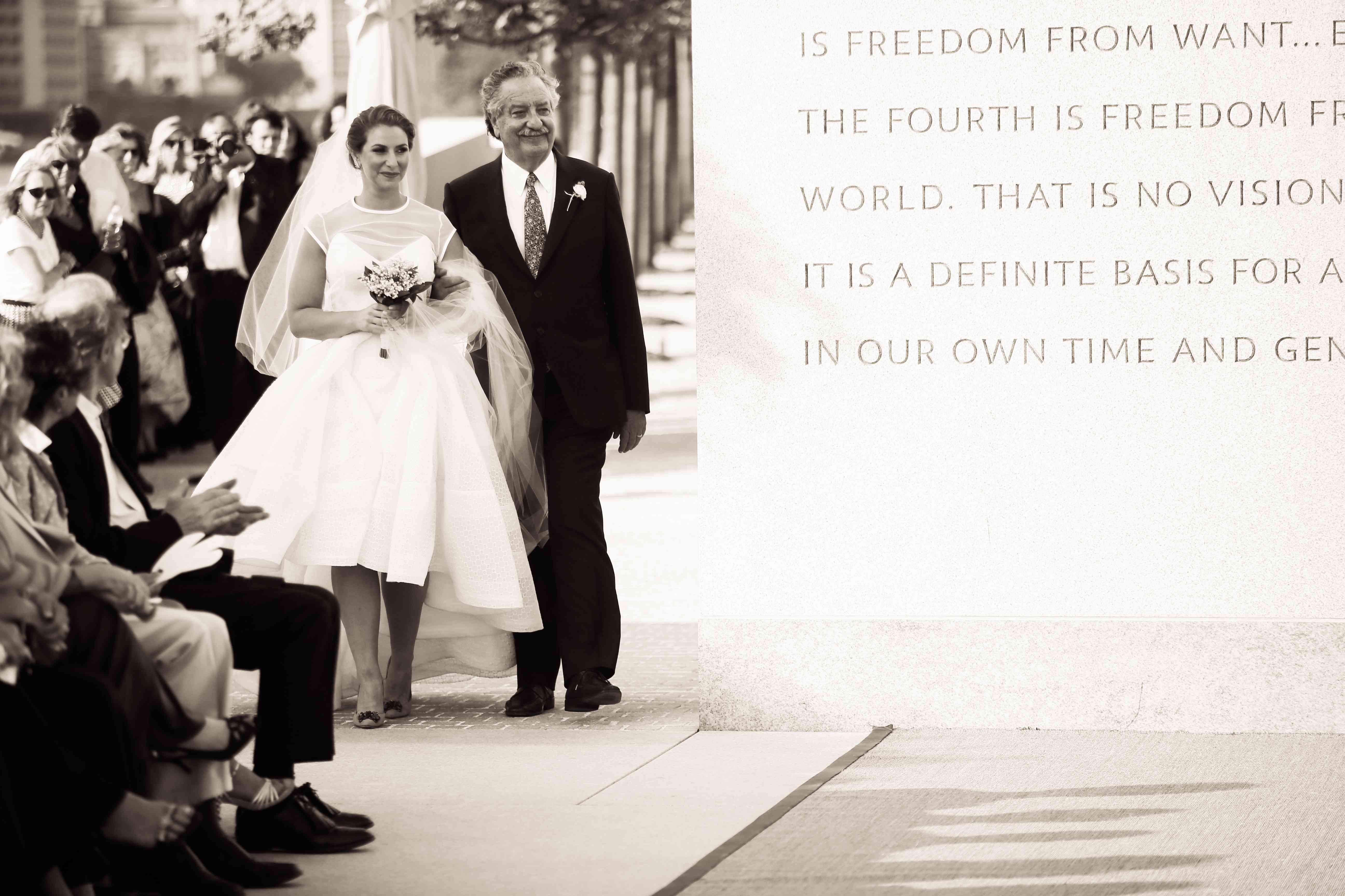 下次你的朋友试图让你开启相亲,你应该让他们去。就拿艾米丽·蒂施·萨斯曼和凯文·克劳来说,他们在2011年的第一次约会都要感谢他们的朋友。三年(以及在ld乐动官网华盛顿特区。之后,两人开始寻找一个可以容纳420名宾客的非传统婚礼场地。他们很快就来到了纽约市罗斯福岛的四自由公园。艾米丽说:“我们喜欢户外场地和令人难以置信的城市景色。”“我们也喜欢四个自由的价值观,并让他们在婚礼中代表。”