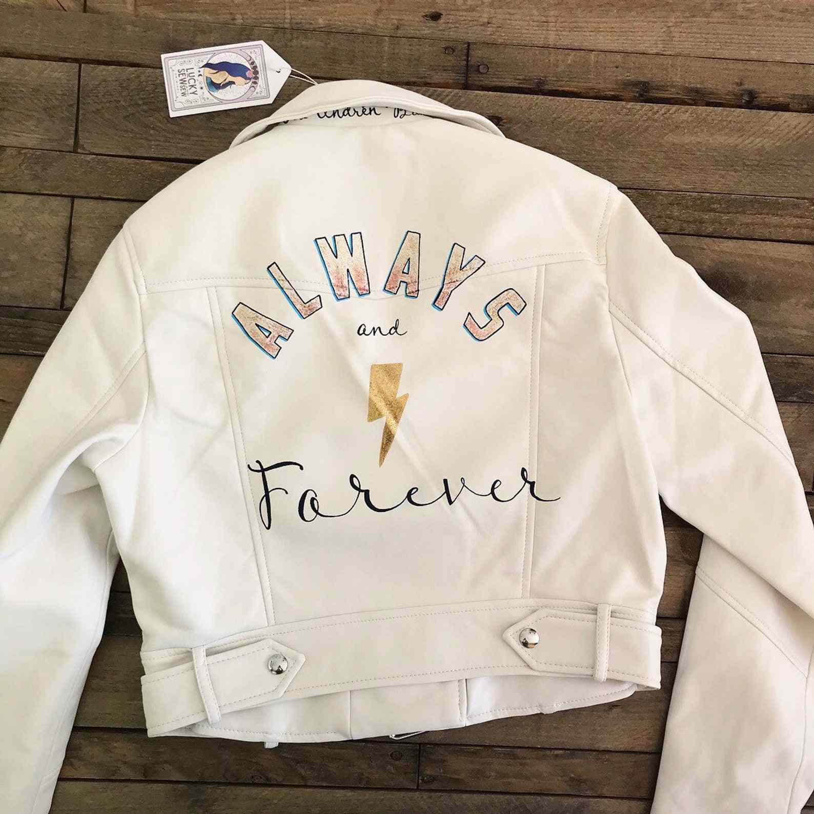 15:顶过你的婚纱太酷皮夹克。(你也可以自定义您的姓氏或名字!)