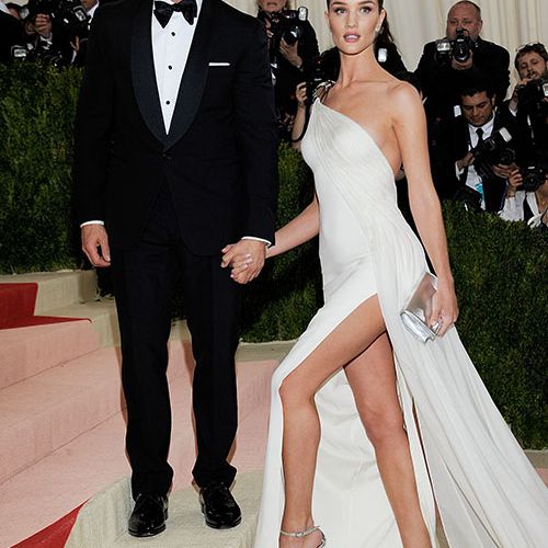 新娘到罗西亨廷顿 - 白顿惠特利踩到了红色地毯上,看起来像一位新娘女神,准备将结绑在一个醒目中拉尔夫•劳伦这是一件漂亮的礼服fiancé杰森·斯坦森。这款象牙色单肩套装的特点是希腊风格的百褶裙,一种金属盔甲的暗示,以及大胆的大腿开叉,将女性化与一点边缘融合在一起。