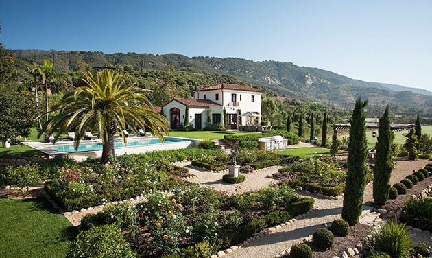这对夫妇在郁郁葱葱的花园前面说“我”在70位客人面前塞维利亚别墅私人庄园(下面的照片),一个庞大的22英亩的化合物,拥有柑橘和橄榄树的果园,美丽的花园,马术设施和10,000平方英尺的主屋,享有固定的地面,周围环绕着令人震惊的太平洋的壮丽景色海洋和圣诞老人芭芭拉山脉。