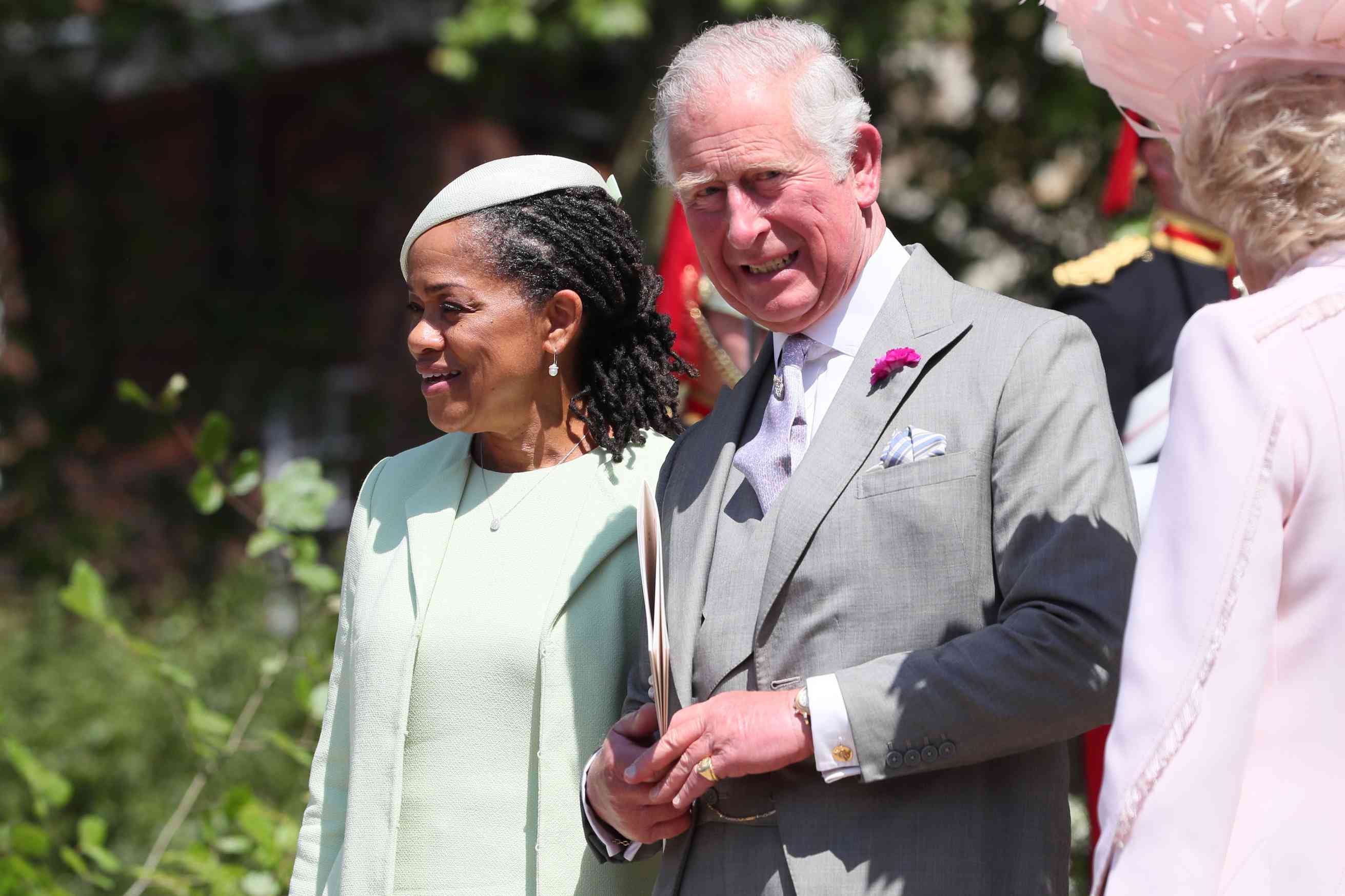 新娘的母亲和王室加入梅根和哈里在教堂的台阶。