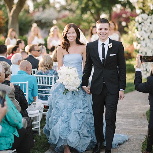 虽然新娘找到了Lanvin的礼服,她非常喜欢,她知道这是不对的,她仪式。“有一些关于在白色结婚是毡帐布里特妮谈到她的婚纱时说。“我开始考虑彩色面纱,但后来我看到了蓝色莫尼克·利尔婚纱礼服,不能把它弄出来我的系统。我大方的妈妈让我既礼服,那是!”露肩丝质罗缎舞会礼服是配套齐全和纹理裙子和合体的上身。并以其高 - 低轮廓,她能够炫耀她的白色的Manolo Blahnik的鞋。