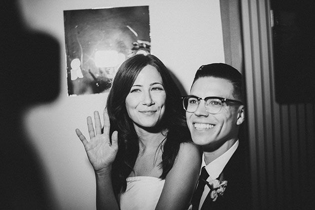 当晚宾客们跳舞,但休息时也会在夫妇俩的照相亭摆好姿势拍照。