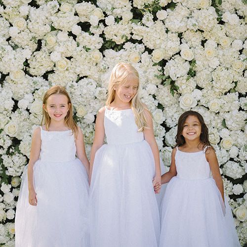 布里特妮的表妹的女儿充当了这对夫妇的花童。“我们有一个大家庭,而且都是本地人,所以我很喜欢看着这些女孩长大,”她说。“我让他们挑选几件不同的大卫婚纱,尽管我一直都知道他们会挑一些更像公主的婚纱!”