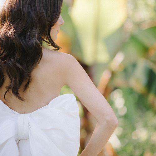 典礼结束后,布里特妮换上了最先引起她注意的浪凡(Lanvin)礼服。“我们还没订婚,我就在Pinterest上找到了它,它让我的心都停止了怦怦直跳,”她说起这件背部有一个大蝴蝶结的无肩带连衣裙。“我妈妈找到了公司里的最后一件衣服,但它比我穿的衣服大了5号。”With the help of a local seamstress, Brittney brought it down to her size and loved how comfortable she felt. "It was like coming home after a long day. I just felt very me in it."