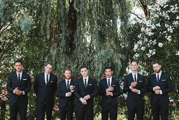 凯尔的伴郎们就像那些穿着紧身H&M西装和窄领带的女士们一样时尚。