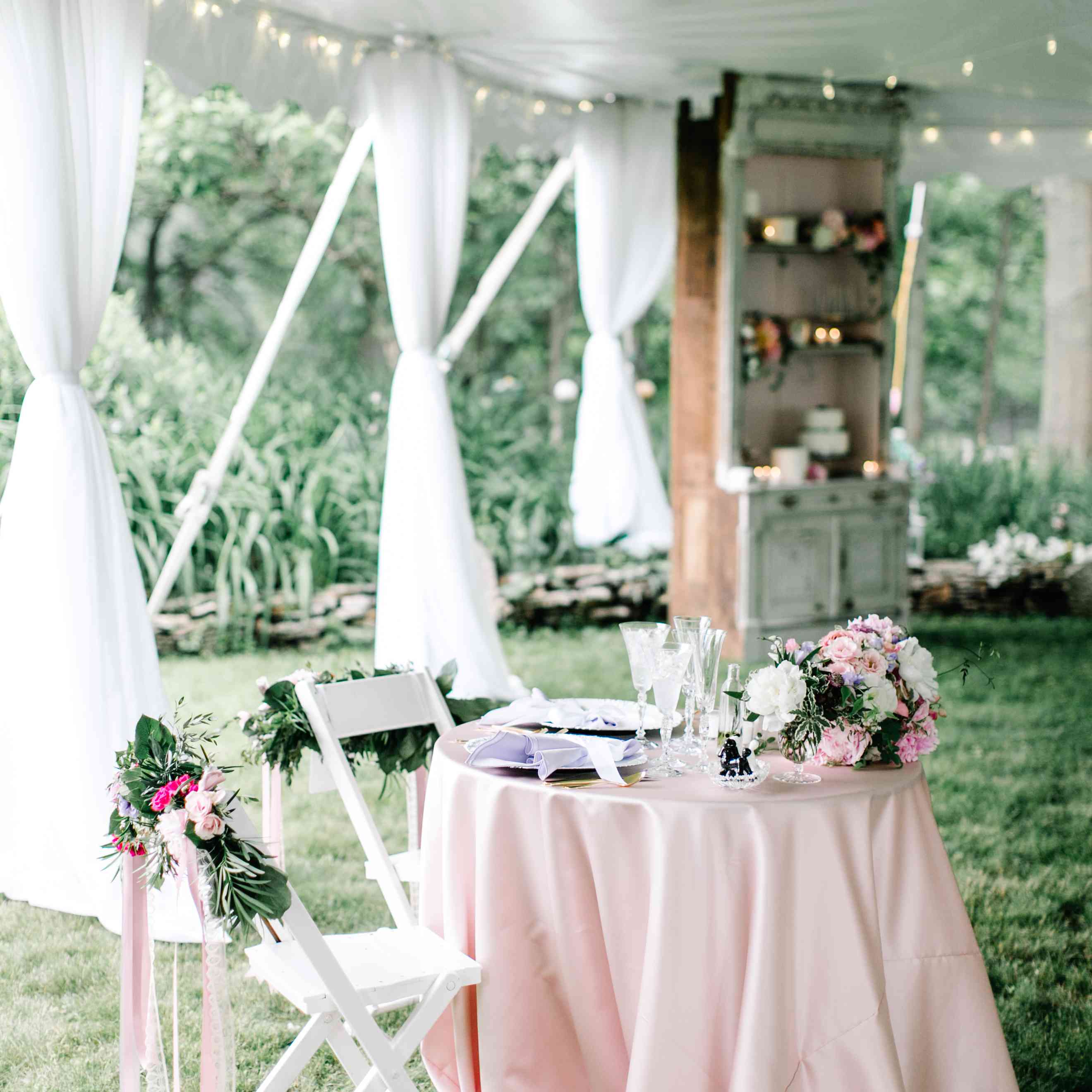 远离疯狂几分钟与a婚宴晚餐在这里,你可以谈论(或不谈论)所有事情的进展情况,并陶醉在你美妙的婚礼当天。幸运的是,有无尽的甜心餐桌的想法,那里有适合任何一对新婚夫妇。