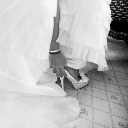 耐莉婚礼当天的装扮全是配饰。她的鞋子像新娘一样洁白,但她选择了一双时尚的鞋子芬迪白色缎面蝴蝶结的平底鞋。