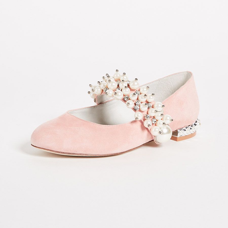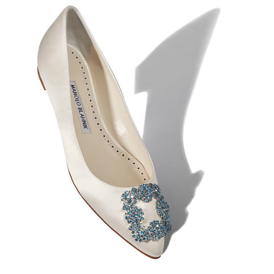Hangisiflat新娘白色缎宝石搭扣平底鞋,$ 925,莫罗·伯拉尼克