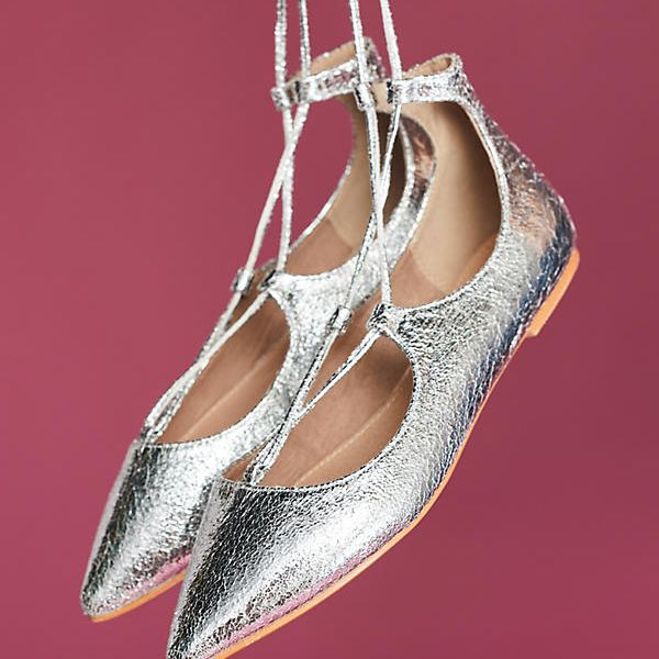 系带的芭蕾平底鞋,$ 98,凡妮莎武可在Anthropologie的
